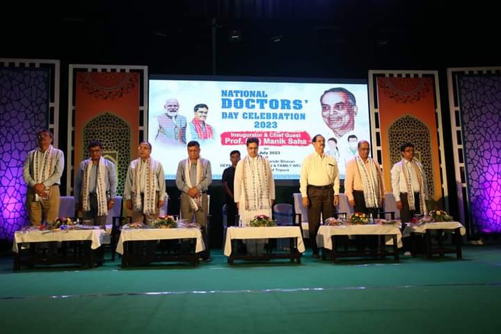 With the initiative of Health and Family Welfare Department, Government of Tripura celebrated the National Doctors Day 2023 at Rabindra Satabarshiki Bhawan, Agartala on Saturday (1st July, 2023). In the presence of many dignitaries Hon’ble Chief Minister Dr. Manik Saha inaugurated the programme.