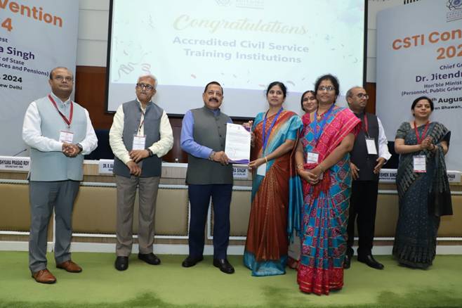 During the Civil Services Training Institutions (CSTI) Convention, Director General, NI-MSME has received the Accreditation Certificate from Dr Jitendra Singh, Minister of State for Science and Technology; Personnel, Public Grievances & Pensions; Atomic Energy; Space & Prime Minister’s Office, as a part of Felicitation of Accredited Civil Services Training Institutions on 12 August, 2024 at Vigyan Bhavan, New Delhi.