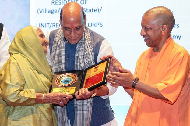 As part of the event, Shri Rajnath Singh felicitated War Heroes, including Gallantry award recipient Subedar Major Retd. (Honorary Captain) Yogendra Singh Yadav; Next-of-Kin of Subedar and Honorary Captain Karam Singh, Company Quartermaster Havildar Abdul Hamid, Second Lieutenant Arun Khetarpal, Captain Vikram Batra, Captain Manoj Kumar Pandey & Brigadier Mohammad Usman; and Veer Naris of the fallen heroes, honouring their bravery & sacrifice in the service of the nation.