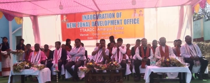 Amarpur, 11th of January 2025 CEM Purna Chandra Jamatia, TTAADC has inaugurated new Zonal development office building here in Ampi nagar, Gomati Tripura today. On this auspicious inauguration occasion many ADC administrators and general public have assembled here in the zonal office building premises to participate the programme. In presence of many dignitaries CEM Purna Chandra Jamatia has inaugurator the new dashing office building.