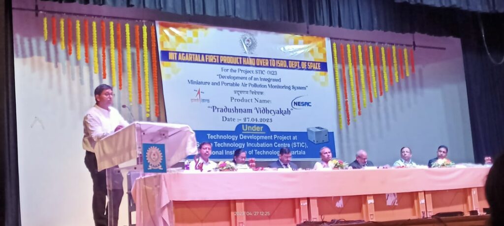 This pollution monitoring systems is low cost, light weight and easily transportable. Director, NIT Agartala handed over the product to ISRO.
