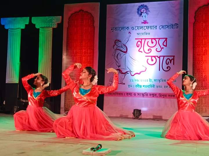 With the initiative of Nrityalok Welfare Society organized “Nrityer Tale” cultural programme in collaboration Information and Cultural Affairs Department Government of Tripura at Rabindra Satabarshiki Bhawan, Agartala on Sunday (11th June, 2023). Hon’ble Mayor of Agartala Municipal Corporation (AMC) Dipak Majumder and other dignitaries were present in the programme.