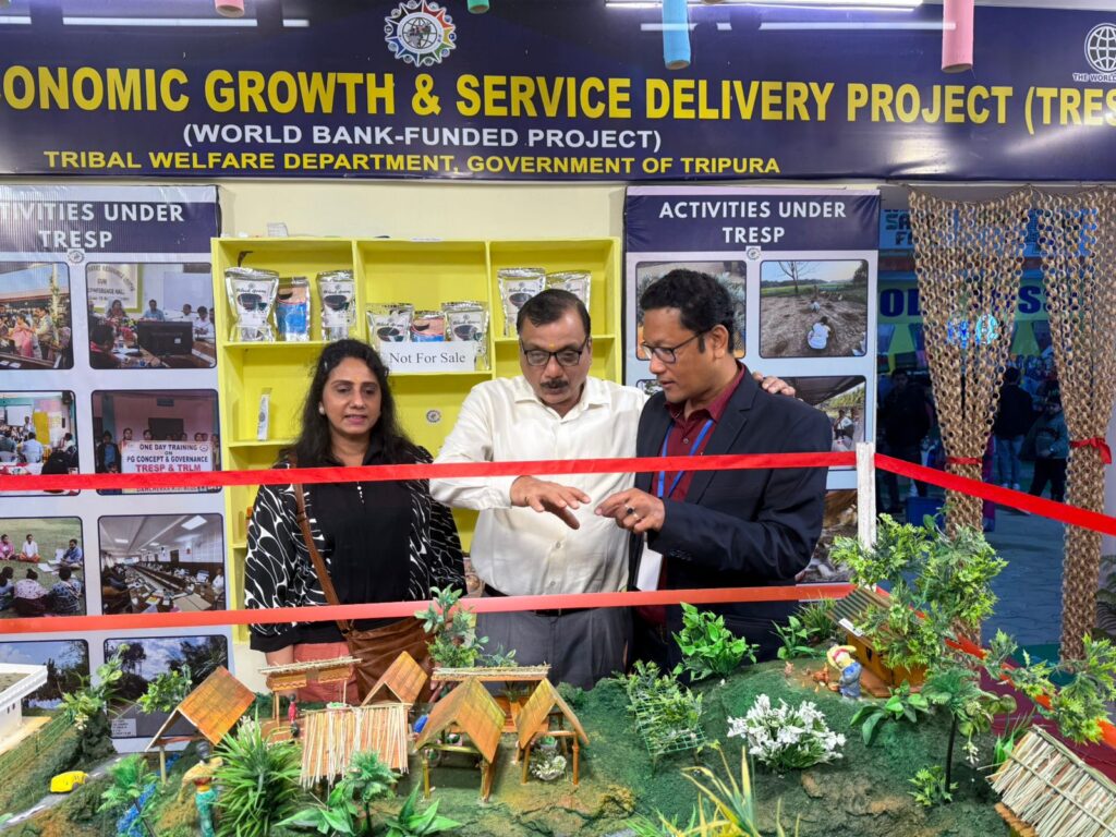 Agartala, Tripura, 18th of December 2025 : The Chief Operating Officer (COO) of ONGC Tripura Power Company Ltd. (OTPC), Shri Sanjay Garhwal, today visited the TRESP stall in the SARAS Fair and oversee the project’s ongoing initiatives and multi-dimensional approaches. During his interaction with the TRESP team, Shri Garhwal highly appreciated TRESP’s meaningful and genuine work at the grassroots level being displayed in the SARAS Fair .