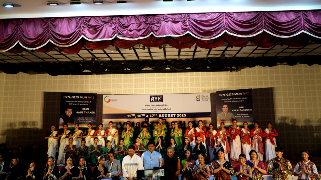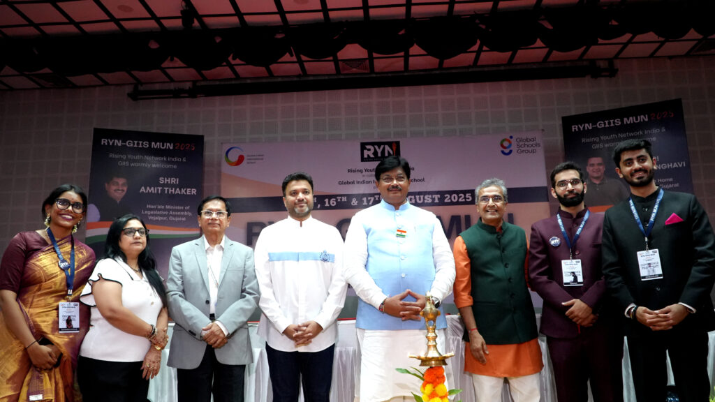 Ahmedabad, 19th of August 2025 : The Global Indian International School (GIIS, Ahmedabad, in collaboration with the Rising Youth Network India, successfully hosted the third edition of its prestigious Model United Nations conference – GIIS-RYN MUN 3.0. Held from 14th to 17th August 2025, the event brought together over 500 delegates from 60 schools across India, GIIS-RYN MUN 3.0 witnessed the enthusiastic participation of over 300 students hailing from both local schools in Ahmedabad, Surat, Gandhinagar, Baroda, Pune, Delhi, and various GSG Campuses, including 100 from GIIS Ahmedabad, 9 from GIIS Noida, 38 from GIIS Balewadi, 1 from Glendale Hyderabad and 12 from Glendale International Cambridge, Hyderabad. This four-day event served as a melting pot of diverse perspectives that brought together students who shared a common passion and enthusiasm for global affairs.