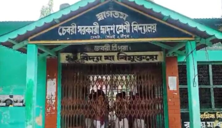 Khowai, 10th of July, 2024 : Students of Chebri Government Class XII School locket the school’s main gate, demanding immediate...