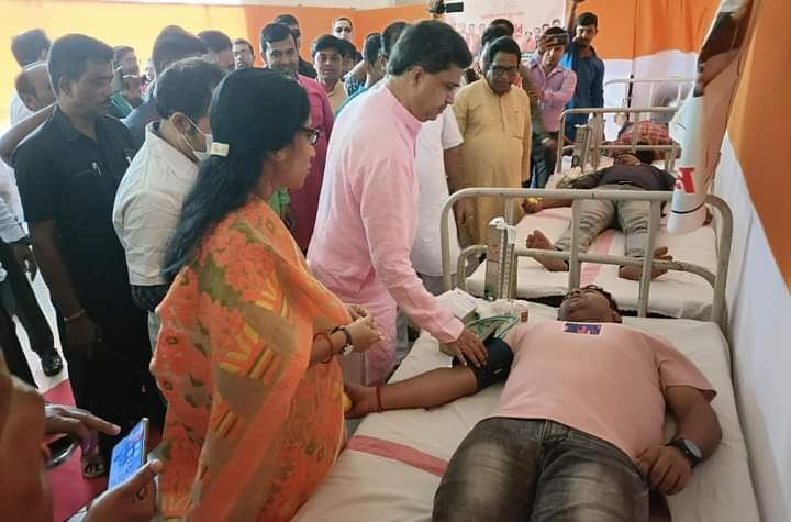 Former Chief Minister Biplab Kumar Deb attended Blood Donation Camp organized by BJYM Faridabad Unit at sector 16 on Sunday...