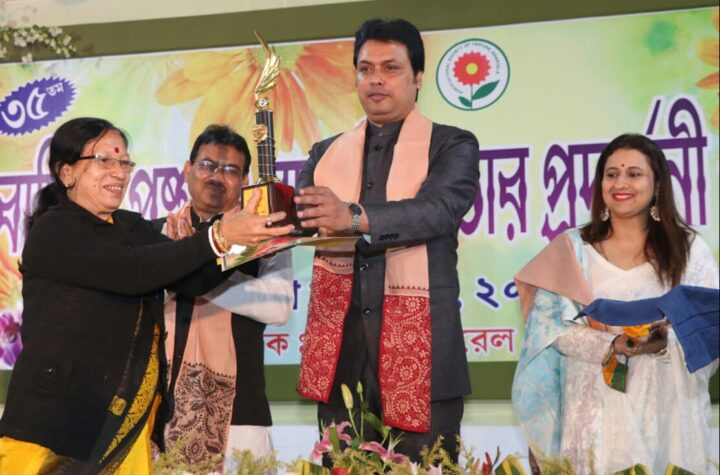 Hon'ble Chief Minister Biplab Kumar Deb during the Distribution of Prize Giving Ceremony of State Level Tribal Folk Dance Competition...