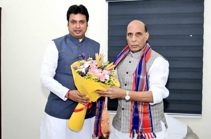 Hon’ble Chief Minister Biplab Kumar Deb met with Hon’ble Union Defence Minister Rajnath Singh on Monday (18th April, 2022). "Honoured...