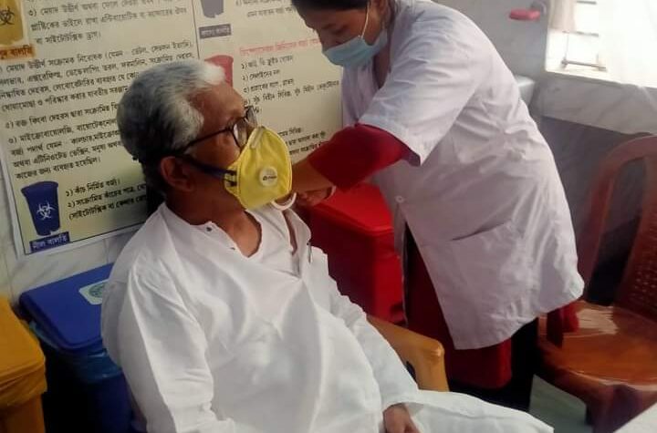 Former state Chief Minister and Present opposition leader Manik Sarkar took the first administered dose of COVID-19 vaccine at IGM...
