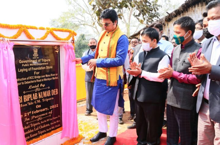 Hon’ble Chief Minister Biplab Kumar Deb laid the foundation stone for the construction of RCC Bridge Over Manu River at...