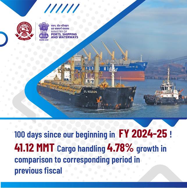 New Delhi, Delhi, 10th of July, 2024 : Paradip Port Authority (PPA) has marked a momentous achievement in its operational history, clocking an unprecedented 41.12 Million Metric Tons (MMT) cargo handling within the first 100 days of the fiscal year 2024-25. This outstanding performance sets a new record for the port, reflecting a 4.78 per cent growth compared to the 39.25 MMT achieved during the same period in the previous fiscal year, FY 2023-24.