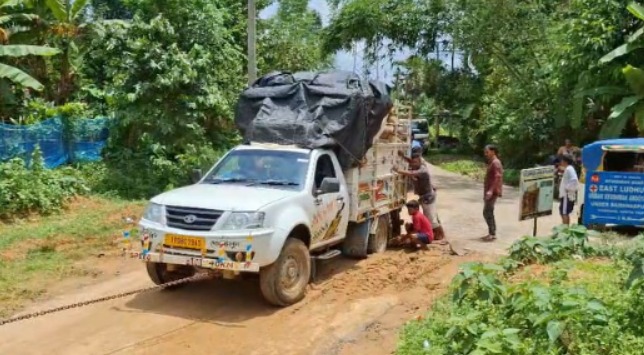 But as soon as the monsoon starts, the wheels of vehicles on the Sabroom-Baisnabpur Road are constantly getting stuck due to the fact that soil was not properly placed on the drain after the pipes were installed along the side of the road. The wheels of the vehicles are going under the ground while trying to pass other vehicles. As a result, it has become difficult to move vehicles on this road. One such incident was witnessed on Friday around 12 noon when a vehicle got stuck in a drain made for laying pipes while transporting rice from the Sabroom rice godown to the ration shop. At that moment, an electric auto passed by the stuck car and got stuck in the drain made for laying pipes. Some people present helped the auto to lift it, but the other car was somehow pulled out by another car. Interacted media locals said that a major accident can happen on this road at any time. The concerned agency must concentrate over the innocent villagers suffering and take proper initiative to safe road, demand the local villagers.