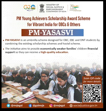 The scheme’s focus on supporting students at both school and college levels helps to nurture talent from an early age and carry it through to higher education, laying a strong foundation for personal and professional growth. Moreover, by integrating earlier scholarship initiatives into a single, streamlined program, PM YASASVI enhances the impact of these efforts, contributing to the creation of a more inclusive and equitable education system. PM-YASASVI is ensuring that no student is left behind in the pursuit of academic and social progress. This scheme is playing a crucial role in the welfare and upliftment of marginalized communities, enabling them to contribute meaningfully to the vision of Viksit Bharat @ 2047.