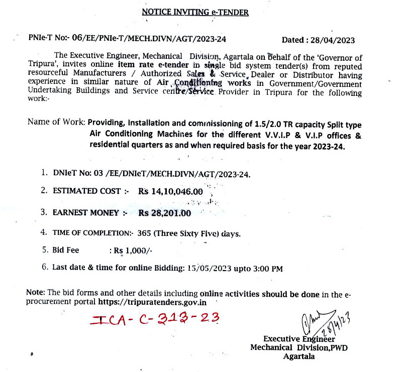 PNIe-T No : 06/EE/PNIe-T/MECH.DIVN/AGT/2023-24 Dated : 28/04/2023.