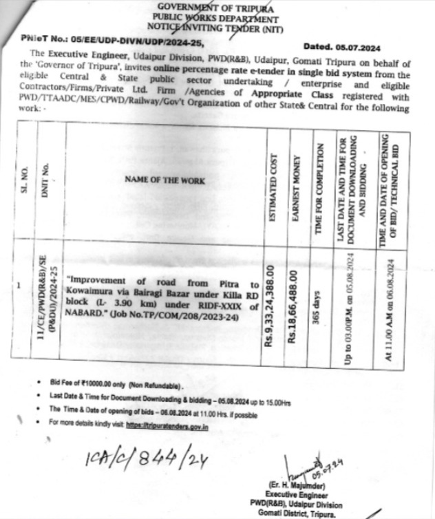 PNIeT No : 05/EE/UDP-DIVN/UDP/2024-25 Dated : 05.07.2024.