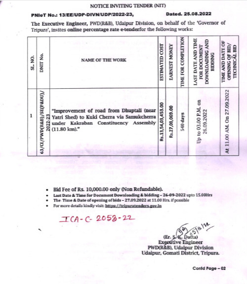 PNIeT No .:  13/EE/UDP-DIVN/UDP/2022-23. Dated : 25.08.2022