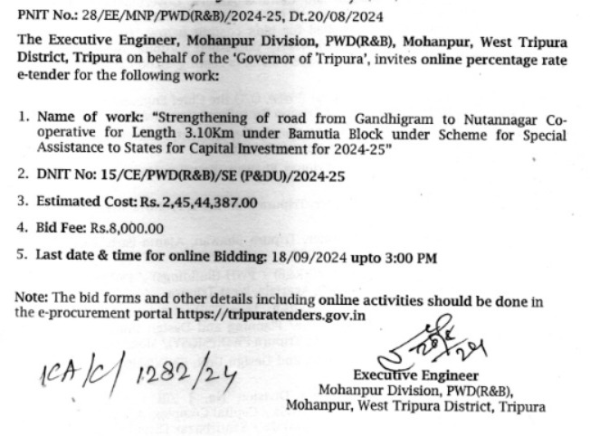 PNIT No: 28/EE/MNP/PWD(R&B)/2024-25, Dt.20/08/2024.