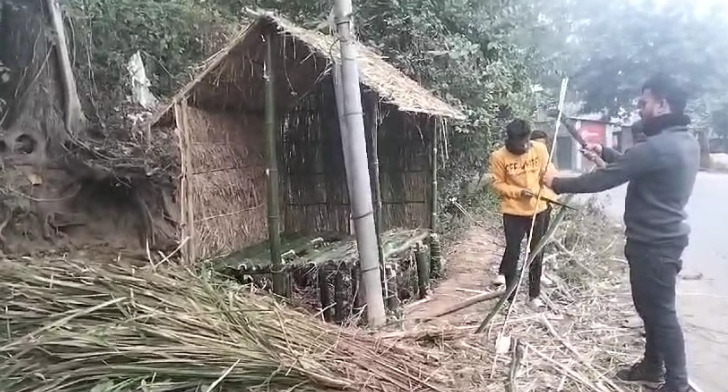 Teliamura, 13th of January 2024 : “Buri Ghar” the old tradition still alive in various parts of the state on the occasion of Makar Sankranti. On the occasion Youngsters have built “Buri Ghar” in Teliamura on Saturday (13th January, 2024). In the modern age, “Buri Ghar” made of straw and bamboo, is on the verge of extinction in rural area. In the era of computer or laptop modernity, the people of the busiest city have forgotten the history of “Buri Ghar”. However, under the touch of science, the people of the present civilized society are trying to avoid the “luxury house” of Poush. In the urban area, “Buri Ghar” made of straw and bamboo cannot be seen, but the young people of the rising age of the city build houses with the modernity.