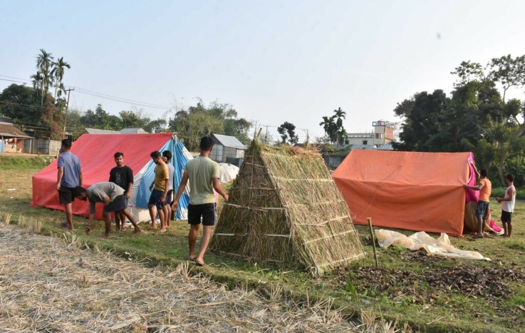 Preparations for traditional Burir Ghar at a remote village in Tripura.