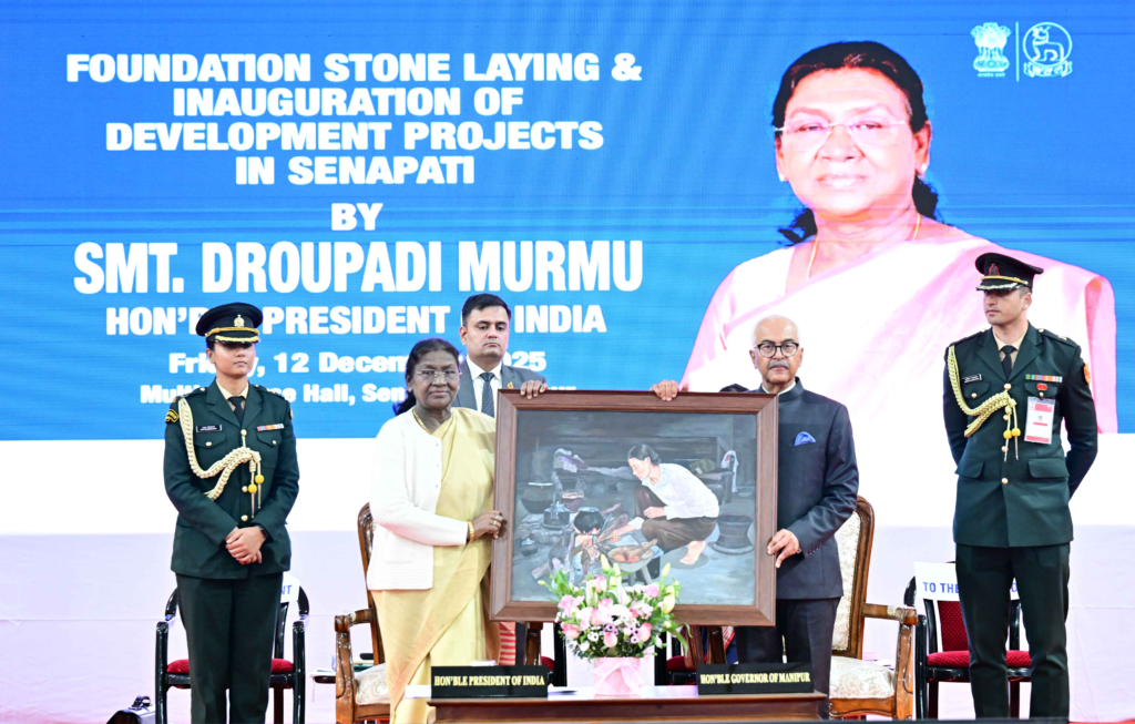 New Delhi, Delhi, 12th of December, 2025 : The President of India, Smt Droupadi Murmu, attended a public function at Senapati, Manipur, today (December 12, 2025). She also laid foundation stones and inaugurated various developmental projects on the occasion.