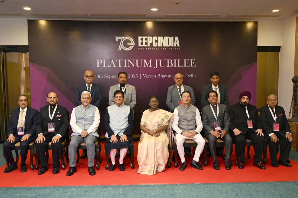 New Delhi, Delhi, 8th of September, 2025 : The President of India, Smt Droupadi Murmu, graced the Platinum Jubilee Celebrations of the Engineering Export Promotion Council (EEPC) India in New Delhi today (September 8, 2025).