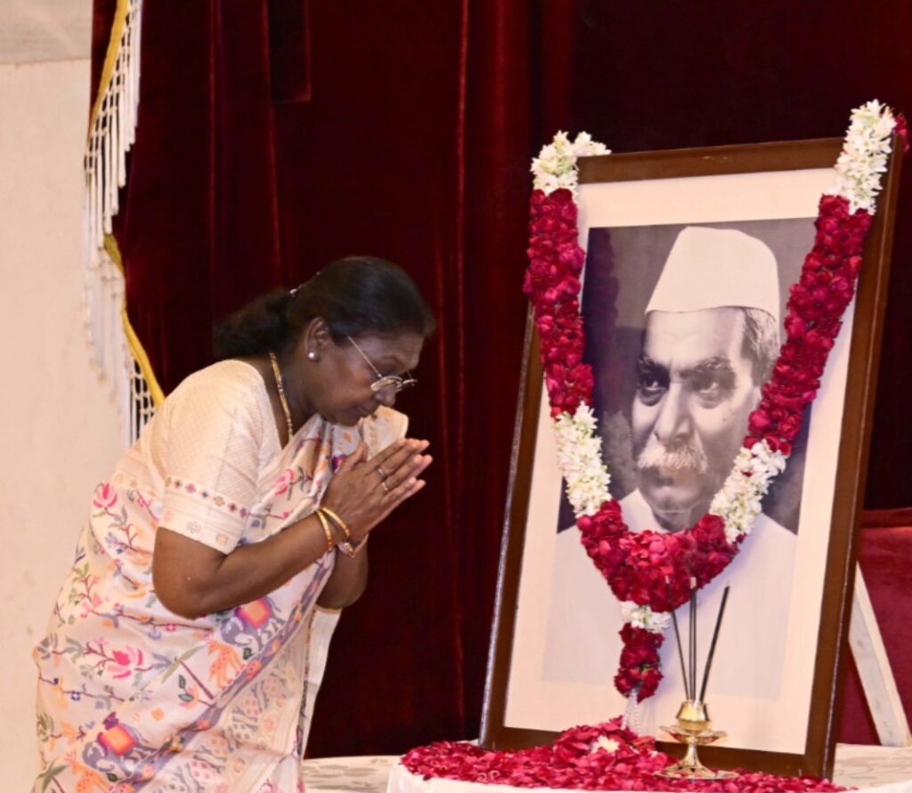 New Delhi, Delhi, 3rd of December, 2025 : The President of India, Smt Droupadi Murmu, paid floral tributes to Dr Rajendra Prasad, the first President of India, on his birth anniversary at Rashtrapati Bhavan today (December 3, 2025).
