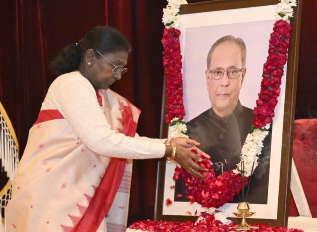 New Delhi, Delhi, 11th of December, 2025 : The President of India, Smt Droupadi Murmu, paid floral tributes to Shri Pranab Mukherjee, former President of India, on his birth anniversary today (December 11, 2025) at Rashtrapati Bhavan.