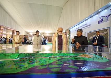 Prime Minister performed Bhoomi Pujan of the Kaziranga Elevated Corridor Project (4-Laning of Kaliabor-Numaligarh section of NH-715), worth over ₹6,950 Crore. The 86 km long Kaziranga Elevated Corridor project is an environmentally conscious National Highway project. It will feature 35 km of Elevated Wildlife Corridor that will pass through Kaziranga National Park, 21 km Bypass section and 30 km widening of the existing highway section of NH-715 from two to four lanes. The project aims to improve regional connectivity while ensuring protection of the park’s rich biodiversity.
