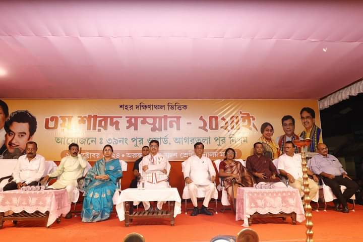 Agartala, Tripura, 26th of October, 2024 : With the initiative of Agartala Municipal Corporation (AMC) Ward No. 39, 3rd Sarad Samman has been conducted at Arundhuti Nagar Higher Secondary School Ground, Agartala on Saturday (26th October, 2024). In the presence of many dignitaries Hon’ble Chief Minister Dr. Manik Saha inaugurated the ceremony by lighting the lamp.