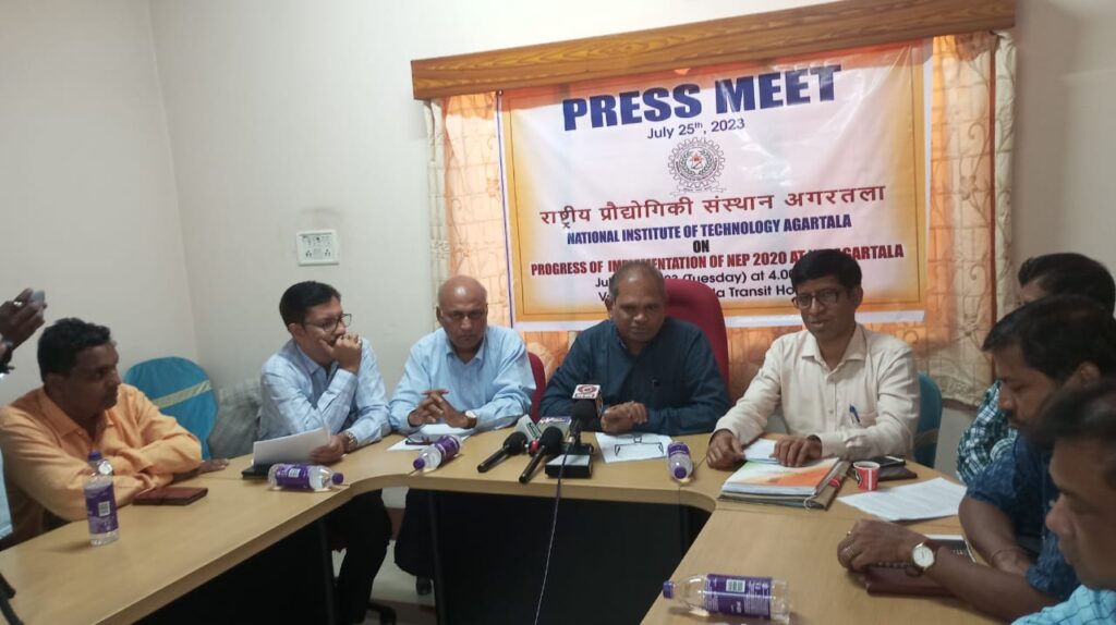 With the initiative of National Institute of Technology (NIT) held Press Conference regarding “Progress of Implementation of NEP 2020 at NIT Agartala” at NIT Agartala Transit House, Shyamali Bazar, Agartala on Tuesday (25th July, 2023). Prof. S. K. Patra, Director of National Institute of Technology (NIT) Agartala, brief the media on “Progress of Implementation of NEP 2020 at NIT Agartala” today.