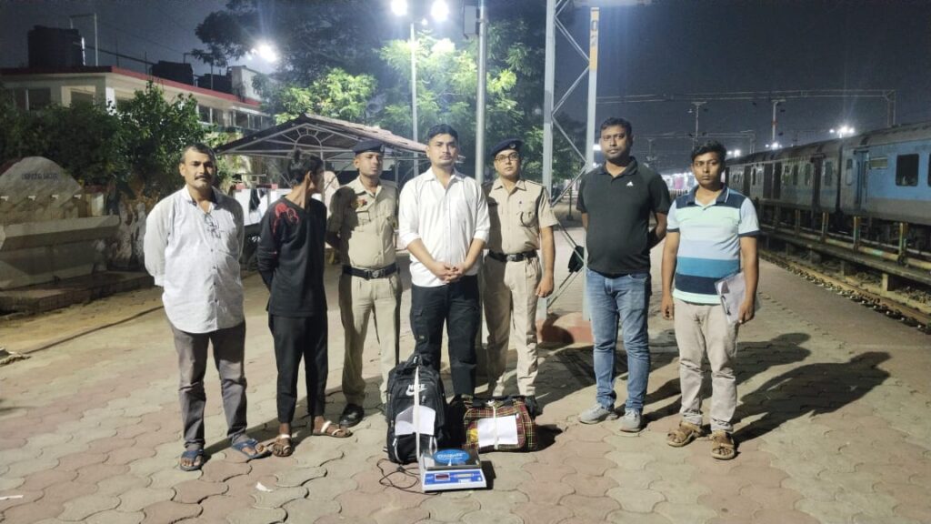 Agartala, Tripura, 8th of November, 2025 : On specific information of the Government Railway Police (GRP), Railway Protection Force (RPF) secret operation was launched in Agartala Railway Station on Saturday (8th November, 2025). According to the sources, RPF & GRP, arrested One (1) drug peddlers from Agartala Railway Station and seized a total of 22.580 Kg dry cannabis (Ganja). He wanted to take it to other state by train using Agartala railway station.