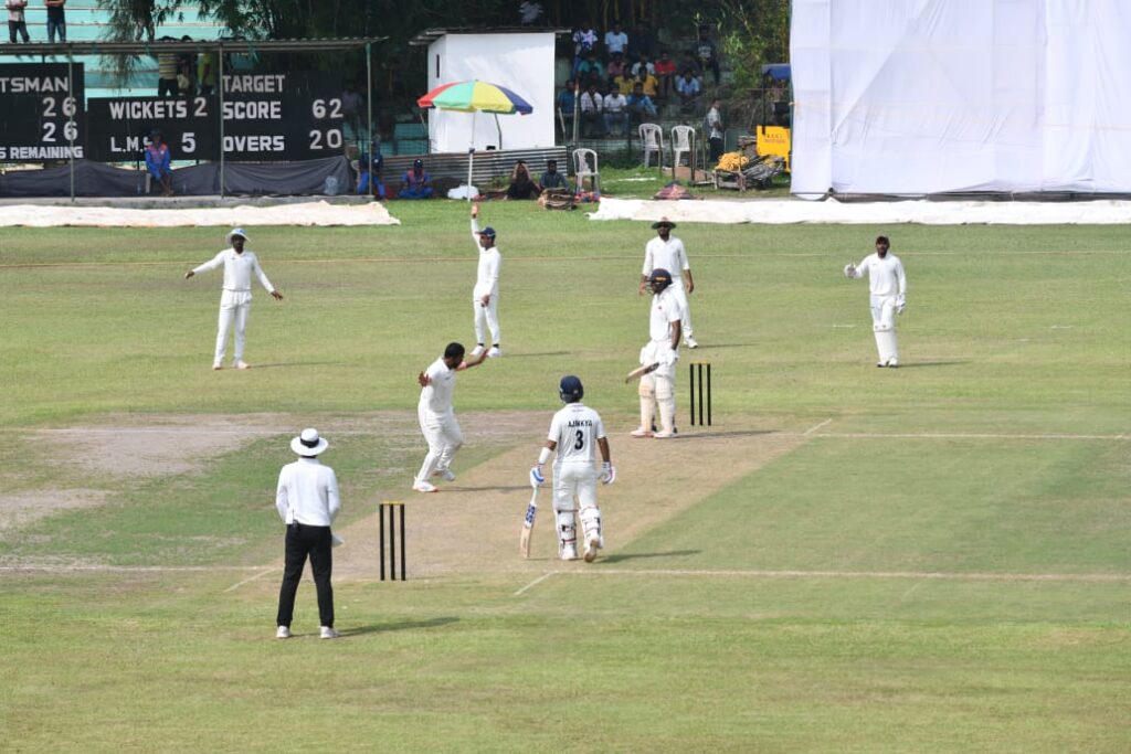 Agartala, Tripura, 26th of October, 2024 : Ranji Trophy match between Tripura and Mumbai started at the MBB Stadium in Agartala on Saturday (26th October, 2024). Suryansh Shedge missed a well deserved century, scoring 99 runs of 93 balls. Mumbai reached 248 for six in their first innings. Manisankar Murasingh (2/75) and Abhijit K Sarkar (2/30) each took two wickets.