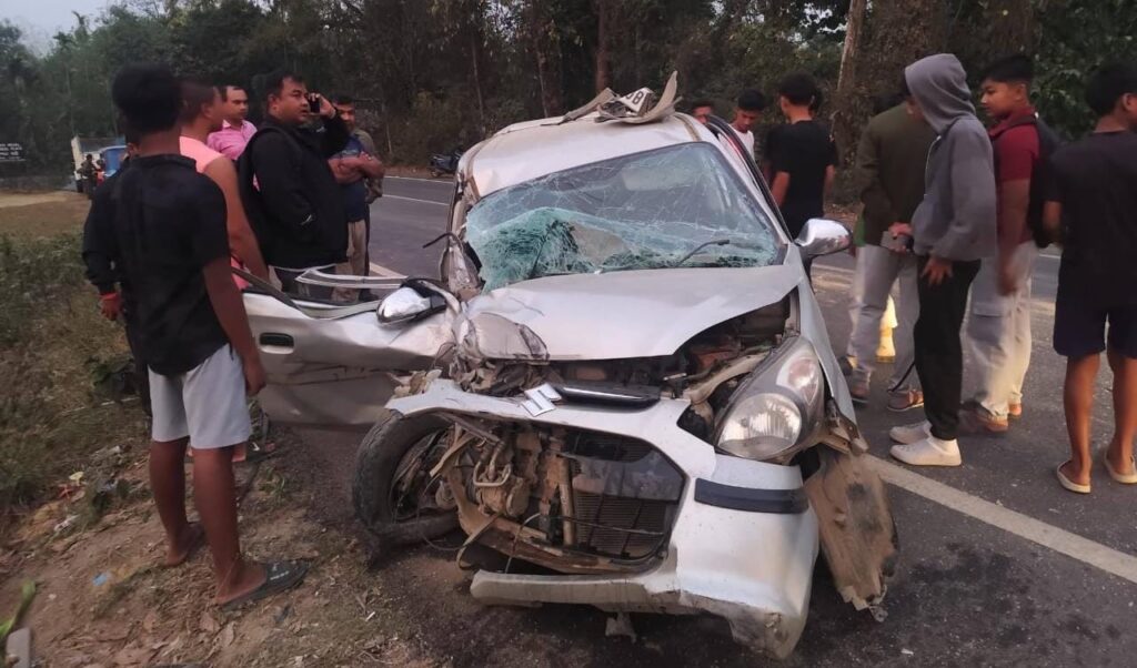 Dharmanagar, Tripura, 28th of February, 2026 : Three persons were seriously injured in a horrific road accident that took place on Friday evening at Panitilla along the Assam–Agartala National Highway under Panisagar Police Station.According to police and local sources, a twelve-wheeler cement-laden lorry collided head-on with an Alto car coming from the opposite direction. The lorry reportedly lost control while attempting to flee after hitting the car and eventually overturned a short distance away.The injured passengers were residents of Baithakhali Chankhira Basti under Patharkandi Police Station in Karimganj district of neighboring Assam. They were returning home after visiting Khowai and Kamalpur in Tripura when the accident occurred near Panitilla.In the collision, the front portion of the Alto car was completely mangled. The driver, Asab Uddin (45), and the front-seat passenger, Mohammad Ali alias Chan Uddin (45), sustained serious injuries. Another passenger, Kamal Uddin (34), who was seated in the back, suffered injuries to his chest and back but is reported to be stable, hospital sources said.