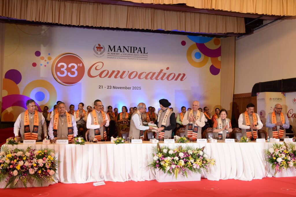 The 33rd Convocation’s second day recognized the outstanding accomplishments of MAHE’s graduates, highlighting the institution’s commitment to shaping versatile, responsible, and inventive leaders for a future shaped by AI and technological change. The ceremony concluded on a warm and uplifting note, as students, families, faculty and guests looked ahead to the next day’s events, eager for more moments of pride and recognition.