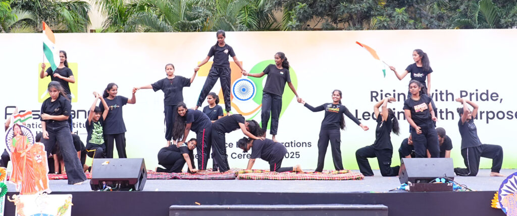 One of the major highlights of the celebration was the “Bharath Darshan – Chakra Formation”, an extraordinary display where students showcased the cultural diversity and unity of India through vibrant formations, traditional attire, and synchronized performances. This symbolic representation embodied the theme, reflecting India’s resilience, progress, and collective vision for the future.