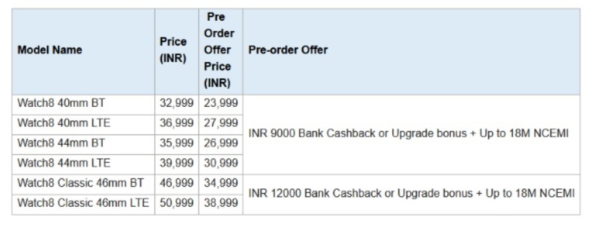 As part of the launch, Samsung is offering attractive introductory prices and exclusive pre-order benefits. Galaxy Watch8 40mm BT is priced at INR 32,999, while the 40mm LTE version is available at INR 36,999. The larger 44mm BT and LTE variants are priced at INR 35,999 and INR 39,999 respectively. Galaxy Watch8 Classic 47mm BT model is priced at INR 46,999, while the LTE variant is available at INR 50,999.