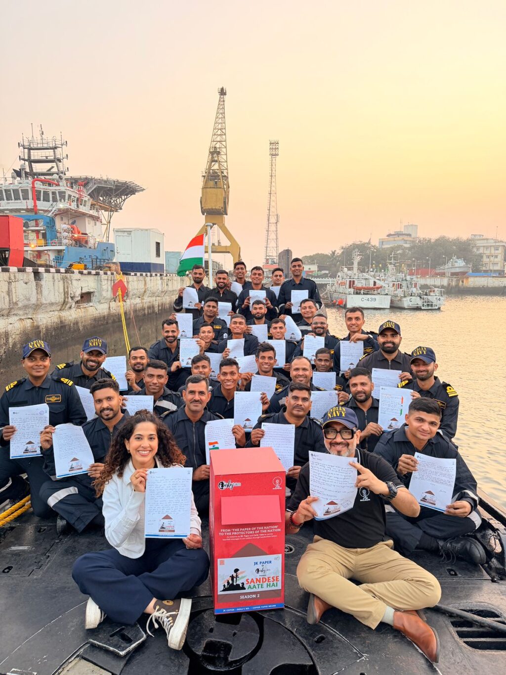 What makes Sandese Aate Hai truly special is the way Kamiya Jani, Editor-in-Chief of Curly Tales, enters this world, not as an observer, but as an Indian seeking understanding. Alongside her, representatives from JK Paper also travelled across the country, becoming part of this journey of gratitude. Together, they stepped into soldiers’ routines, witnessed their training, and carried with them thousands of handwritten letters collected from schools, colleges, families, and young Indians nationwide.