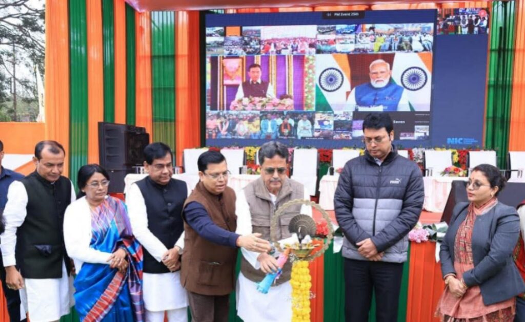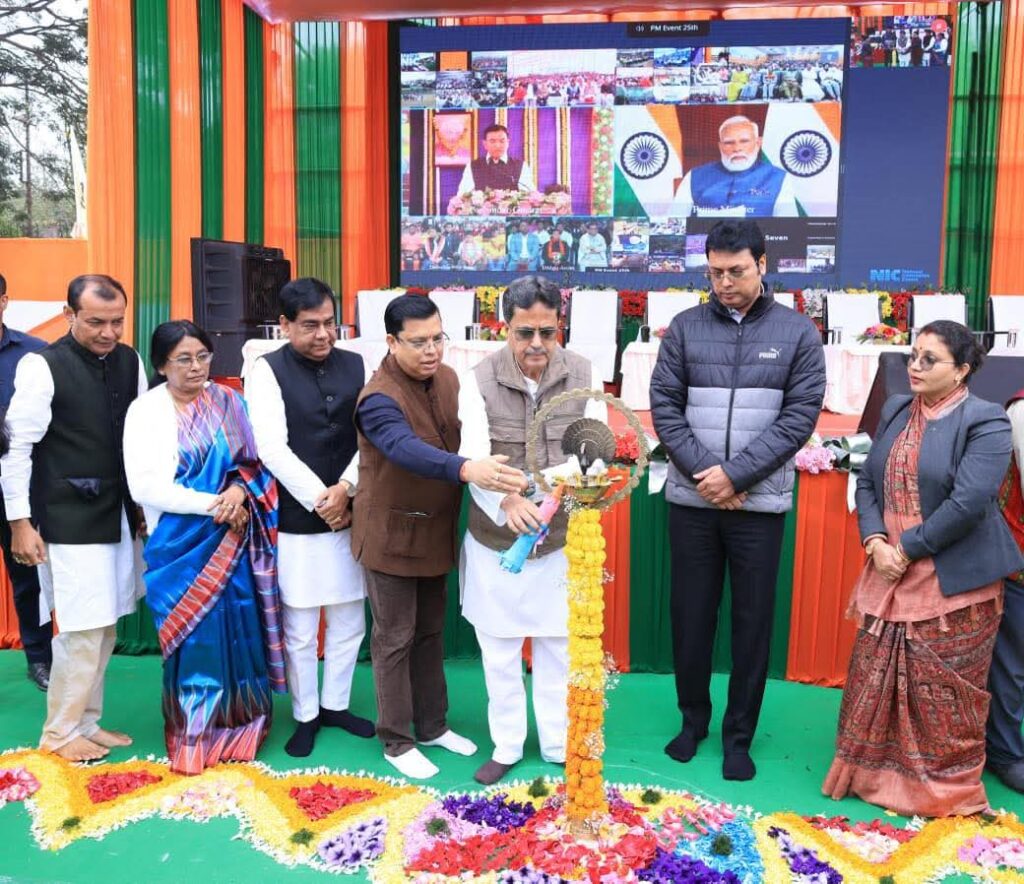 In the presence of many distinguished dignitaries Hon’ble Chief Minister Dr. Manik Saha inaugurated the Sansad Khel Mahotsaav 2025 by lighting the lamp. He also hoisted the flag of the Sansad Khel Mahotsav.