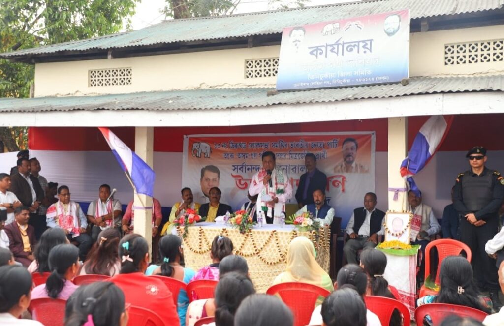 Tinsukia, 13 March 2024: The Union Minister of Ports, Shipping & Waterways and Ayush, Sarbananda Sonowal addressed four public meetings at Tinsukia, Margherita & Digboi during the day. There was an energetic participation by party workers of BJP and AGP when the senior party leader, Sarbananda Sonowal, sought active support to continue the good governance of the Modi government.