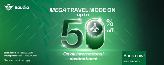 Saudia guests can take advantage of this promotional offer and book their tickets from August 18 to 31, 2024, for travel between September 1 and November 30, 2024. The offer applies to both Business and Guest Class, allowing guests to craft bespoke journeys across four continents aboard Saudia’s fleet.