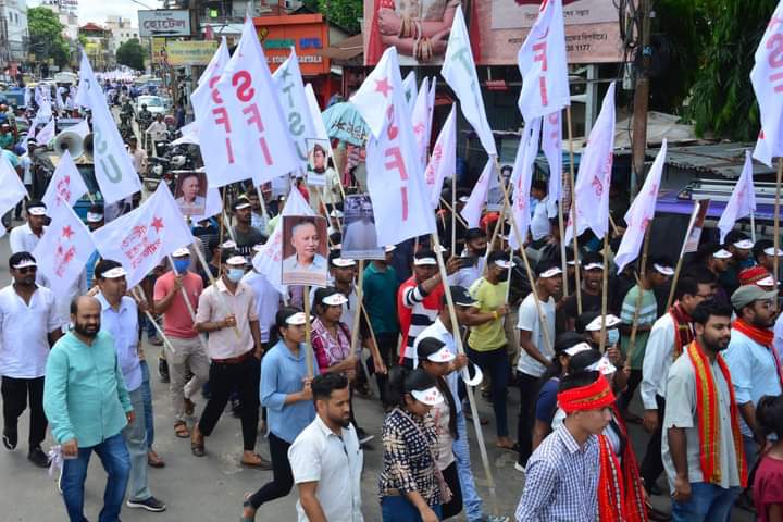 SFI-TSU organization has organized a rally in Agartala on Friday (12th August, 2022). A large number of SFI-TSU activists participated in the rally on this day. SFI-TSU activists marched with the demand,”Save Education – Save Constitution – Save India”. Former Chief Minister of Tripura, Member of Politburo, Communist Party of India (Marxist) and Present opposition leader Manik Sarkar and other leaders were present at the rally.