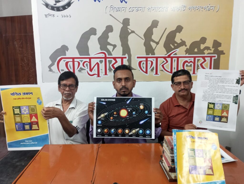 Agartala, Tripura, 4th of April, 2026 : The Tripura Yuktibad Bikash Mancha has observed with deep concern that the SCERT department of the Tripura government has recently included an unscientific and misleading image related to the solar system in the Class VII mathematics textbook “Ganita Prakash.” This image, appearing both on the cover and inside the book, depicts a so-called “Navagraha Yantra.”.