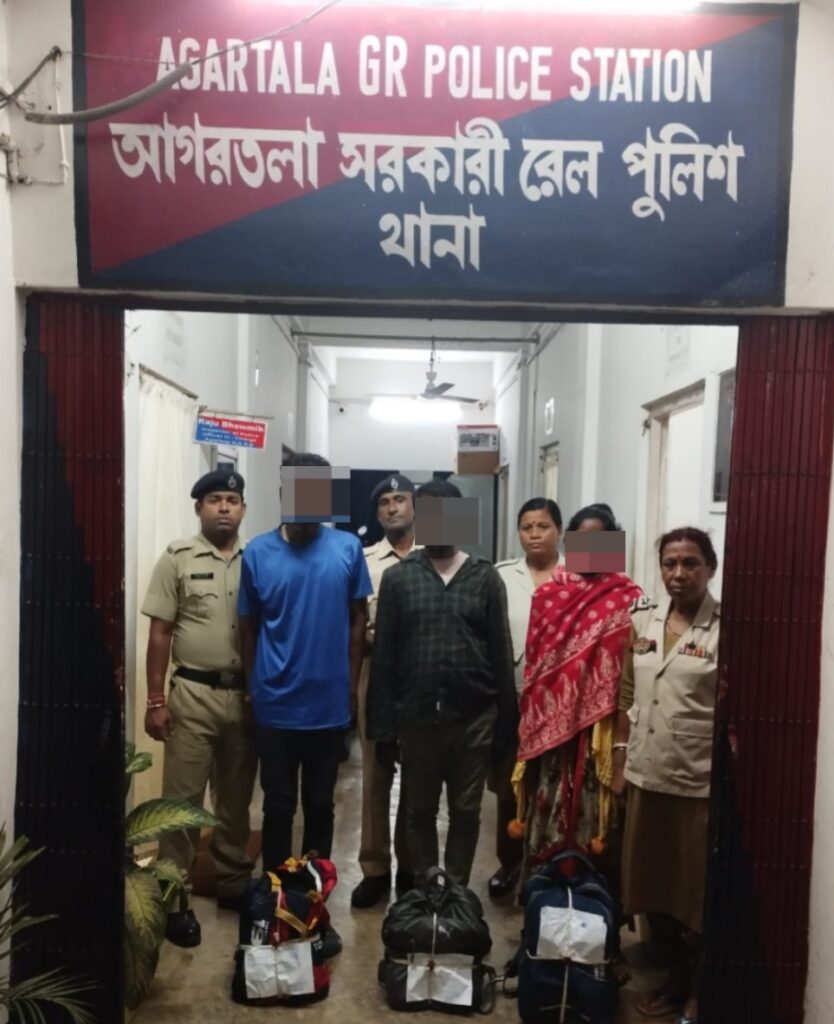 According to sources, at about 7 PM Railway Police to catch 03 persons namely 1) Sujit Majumder (42) S/O- Lt. Amal Majumder Of Bhatta Pukur near Suktara Club PS- A.D. Nagar, West District, Tripura, 2) Sri Shyamal Das (39) S/O- Sri Nitai Chandra Das Of South Pulinpur, Bivekananda Panchayet PS- Teliamura, Khowai District, Tripura and 3) Smt Sita Devi (36) W/O- Lt Rajendra Singh Of Hodla PS-Salanpur, Kulti (M), Dist- Badhaman, Kalyaneshwari, West Bengal at parking area in between RPF Post Agartala and pay & use toilet of Agartala Railway Station along with total 13.250 KG of suspected to be contraband narcotic Ganja in their pitthu bags respectively.