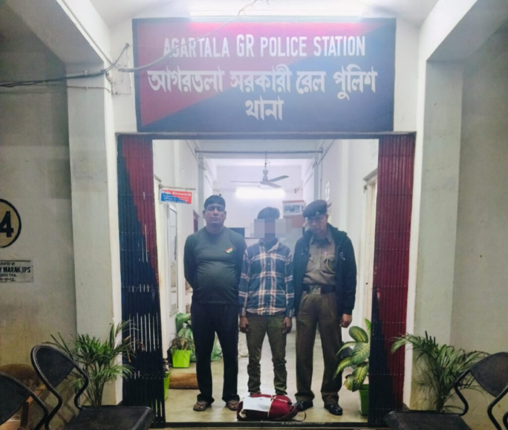 According to sources, GRP & RPF of Agartala at about 07 PM managed to catch one person namely Prem Kumar (20), S/0- Sri Shomhari Roy of Mohanpur, PS- Salimpur, Dist- Patna, State- Bihar at Agartala Railway Station in Parking area in between RPF Post Agartala and  pay & use toilet along with total 2.560 Kg purported to be contraband narcotic Ganja in his bag. The value of this Ganja is Rs- 30 thousand approx in black market. Accordingly Railway Police detained him and seized the contraband Ganja. A specific case vide Agartala GRPS case no-2026GRP013, U/S-20(b)(ii)(B)/29 of NDPS Act-1985 has registered against him.