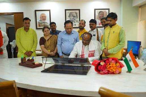 New Delhi, 11th of June, 2024 : Shri Durga Das Uikey assumed charge as Union Minister of State in the Ministry of Tribal Affairs at Shashtri Bhawan, New Delhi, today. On the occasion, Shri Uikey was welcomed by Shri Vibhu Nayar, Secretary and other senior officers of the Ministry.