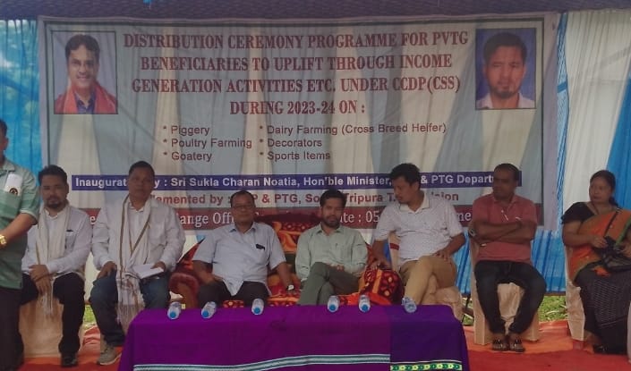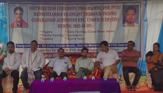 With the initiative of Tuidu TR range under South Tripura TR Division of TRP & PTG department of a mega distribution programme under CCDP(CSS) during 2023-24 has been conducted here in Ampi TRP & PTG office premises in Gomati Tripura today. On this occasion TRP & PTG department minister Shukla Charan Noatia has taken participation in the programme. Hon’ble minister Shukla Charan Noatia has inaugurated the programme in the presence of many dignitaries as well as a large number of PVTG Beneficiaries present in the programme.
