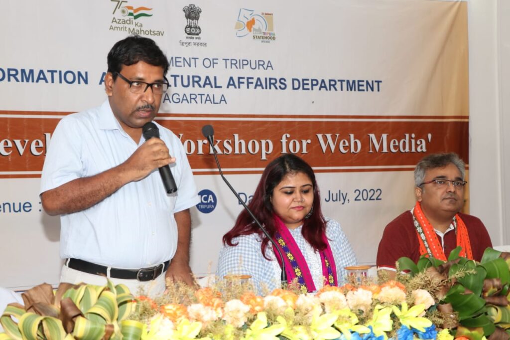A Workshop for Web media held at SIPARD, Agartala on Thursday (14th July, 2022). Ratan Biswas, Director of ICA Department, Rahul Roushan Kumar CEO Aadyaasi media were present at the workshop.