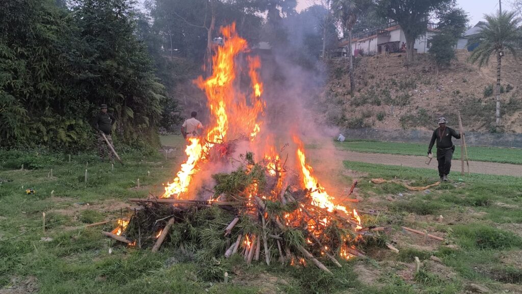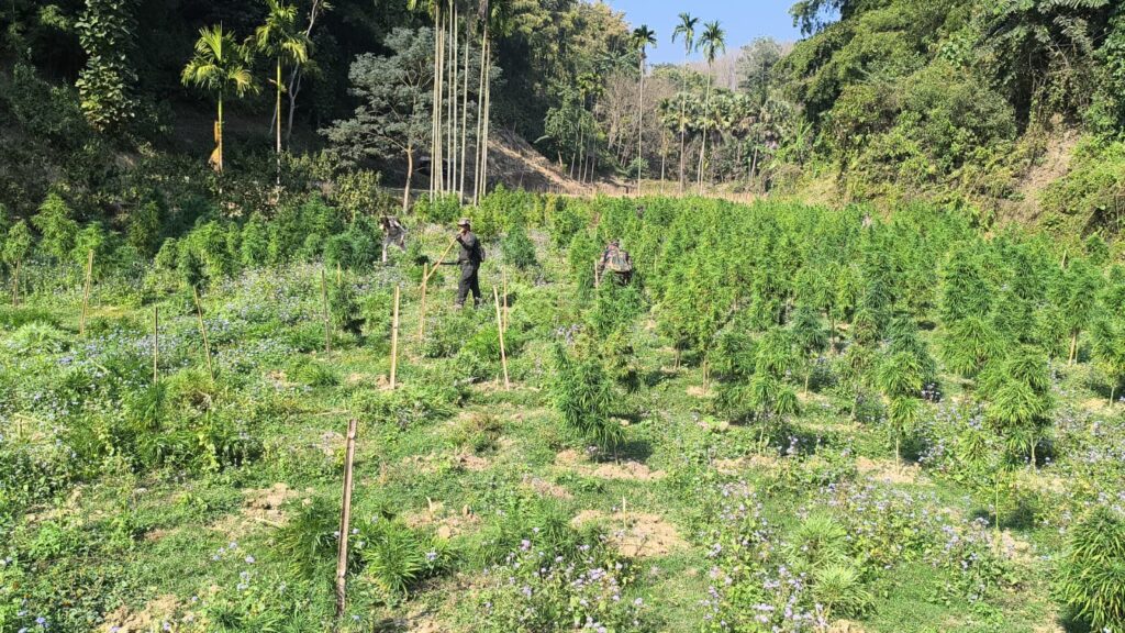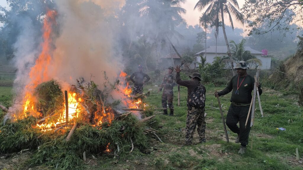 Sepahijala, Tripura, 5th of February, 2026 :  On the basis of secret information Sepahijala District Police, in joint operations with 81 BN BSF, TSR battalions, Forest officials and other agencies, carried out a massive crackdown on illicit Ganja (cannabis) cultivation on Thursday (5th February, 2026) from the morning 9 am at various locations of the district.