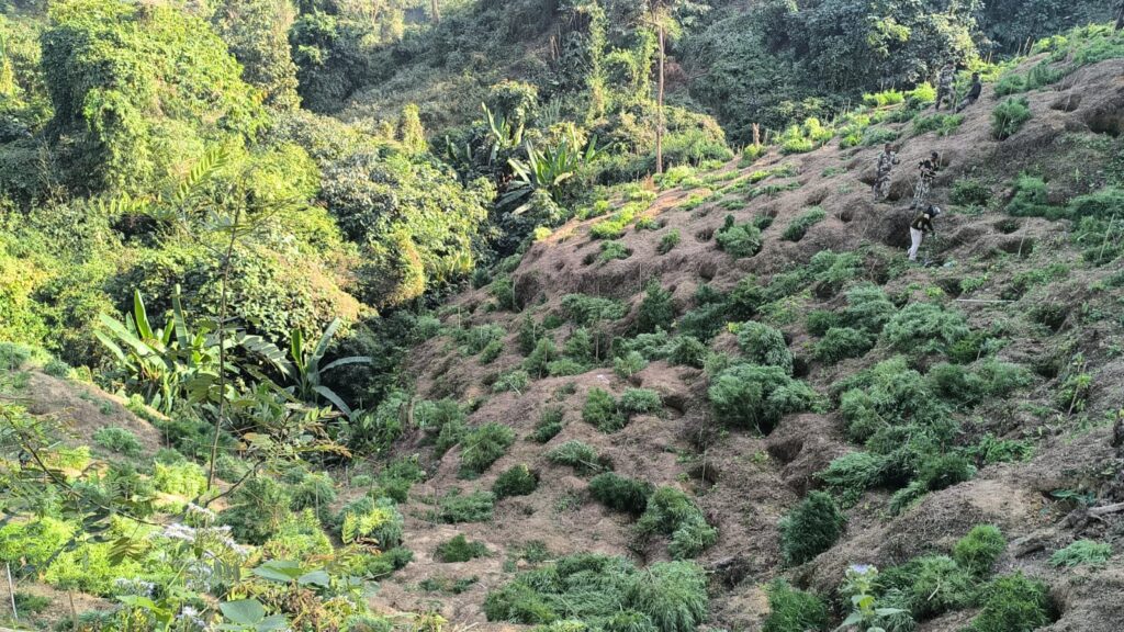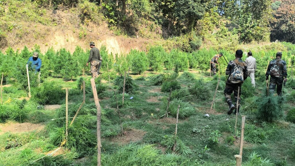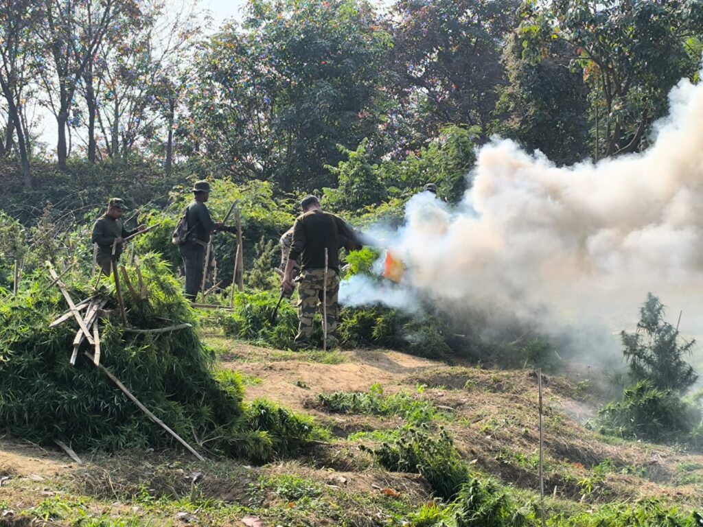 Sonamura, Tripura, 18th of January, 2026 : On the basis of secret information Sepahijala District Police, in joint operations with 81 BN BSF, TSR battalions, Forest officials and other agencies, carried out a massive crackdown on illicit Ganja (cannabis) cultivation on Sunday (18th January, 2026) from the morning 7:30am at various locations of the district.