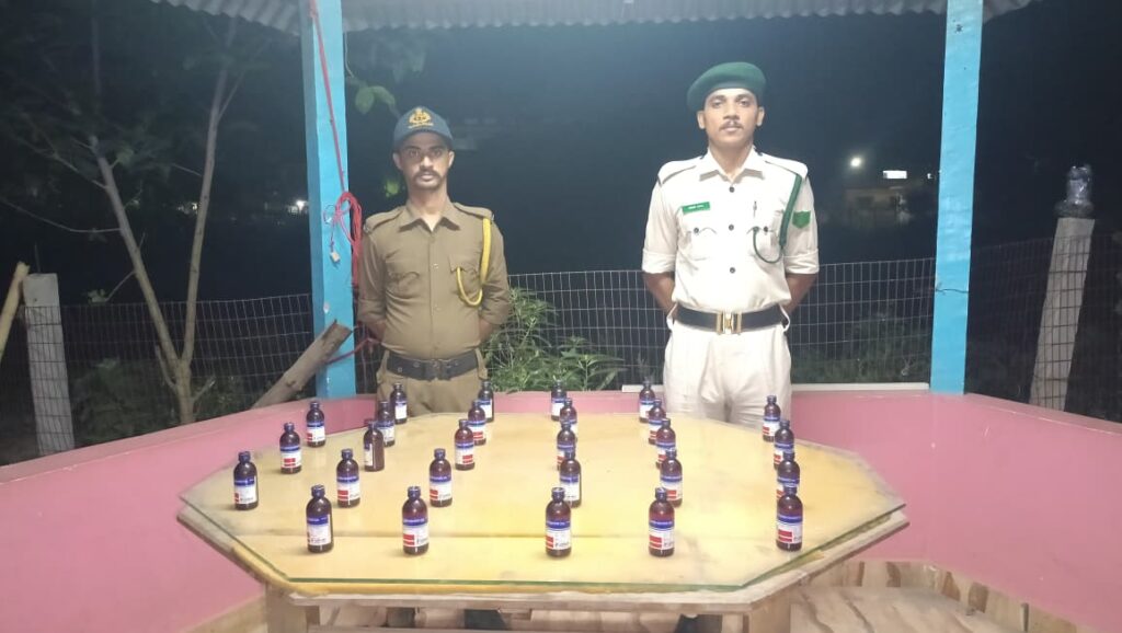 Sonamura, Tripura, 20th of April 2026 : Sonamura Police during patrolling duty recovered and seized total 27 Nos Eskuf cough syrup at N C Nagar border road, Sonamura under Sepahijala District on Monday (20th April, 2026).